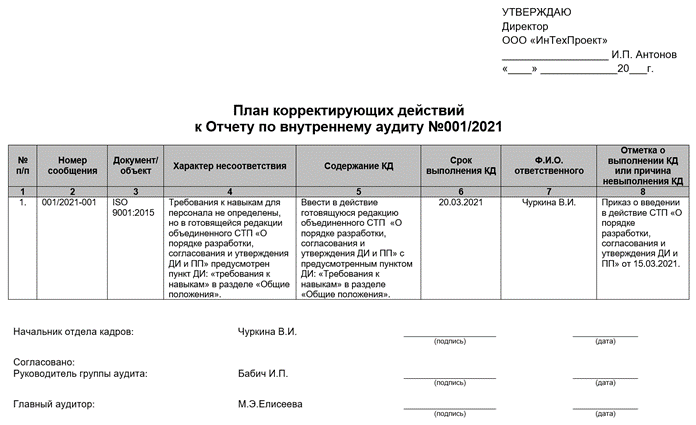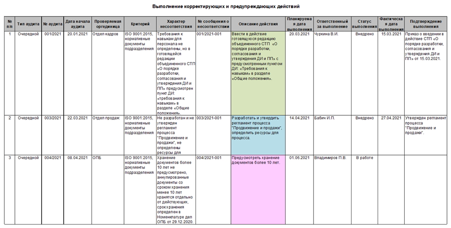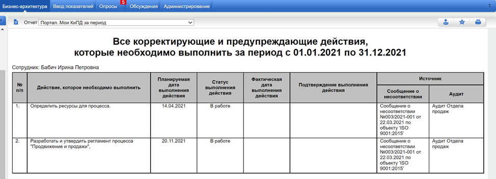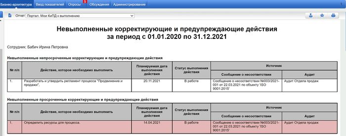 Рис. 11. Отчет «План корректирующих и предупреждающих действий»