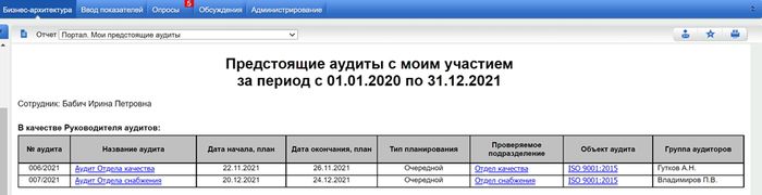 Рис. 19. Отчет «Мои предстоящие аудиты»