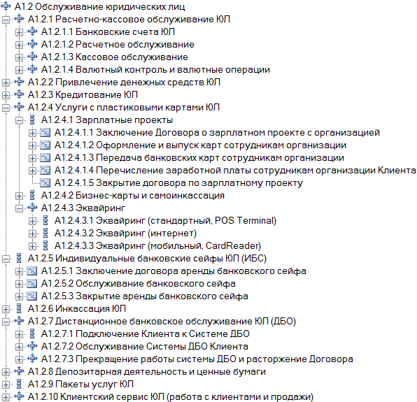 Рис. 3. Дерево бизнес-процессов банка (детализация)
