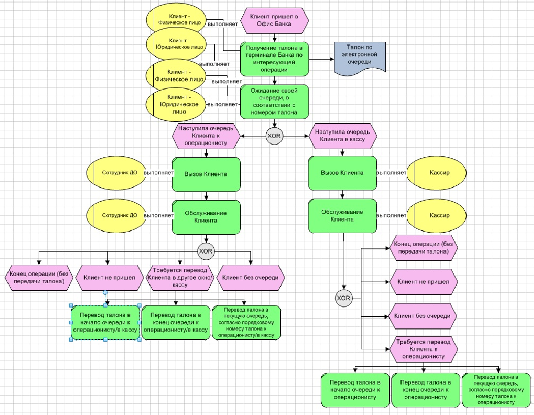 В рамках проекта было необходимо визуализировать процессы продаж и обслуживания клиентов розничной сети в офисах Банка, а также все внутренние процессы, выполняемые розничными сотрудниками офисов. Для каждого процесса устанавливается метрика и механизмы по контролю над соблюдением целевых значений метрик. Таким образом, по розничным офисам должна быть сформирована итоговая нагрузка сотрудников по процессам и распределение трудозатрат по процессам.