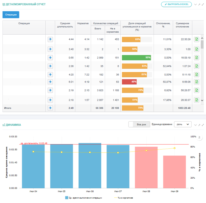 Анализ операций и отслеживание динамики изменения длительности этапов