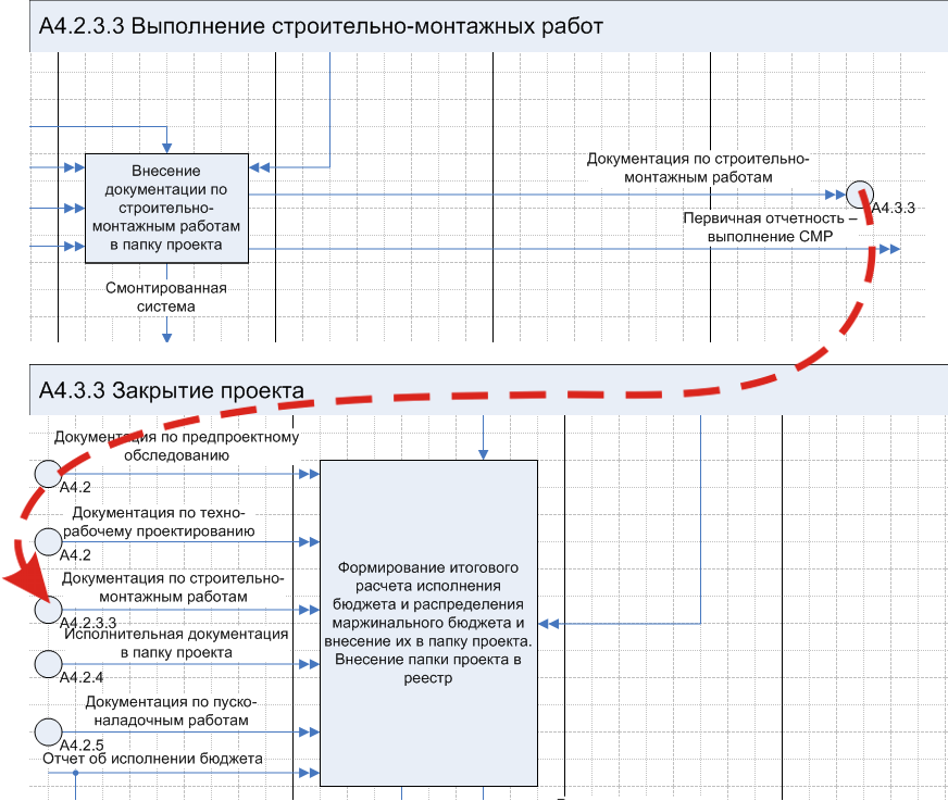 Главная ошибка здесь — попытка вместить в одну диаграмму всю деятельность компании. Нужно вовремя остановиться на промежуточном результате, передать его в другую процедуру и продолжить работу с ним в ее рамках. Это одна из возможностей Business Studio для удобного моделирования (Рис. 2):