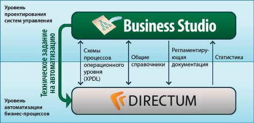Рис. 4. Схема взаимодействия систем в рамках интегрированного решения «Business Studio + DIRECTUM»