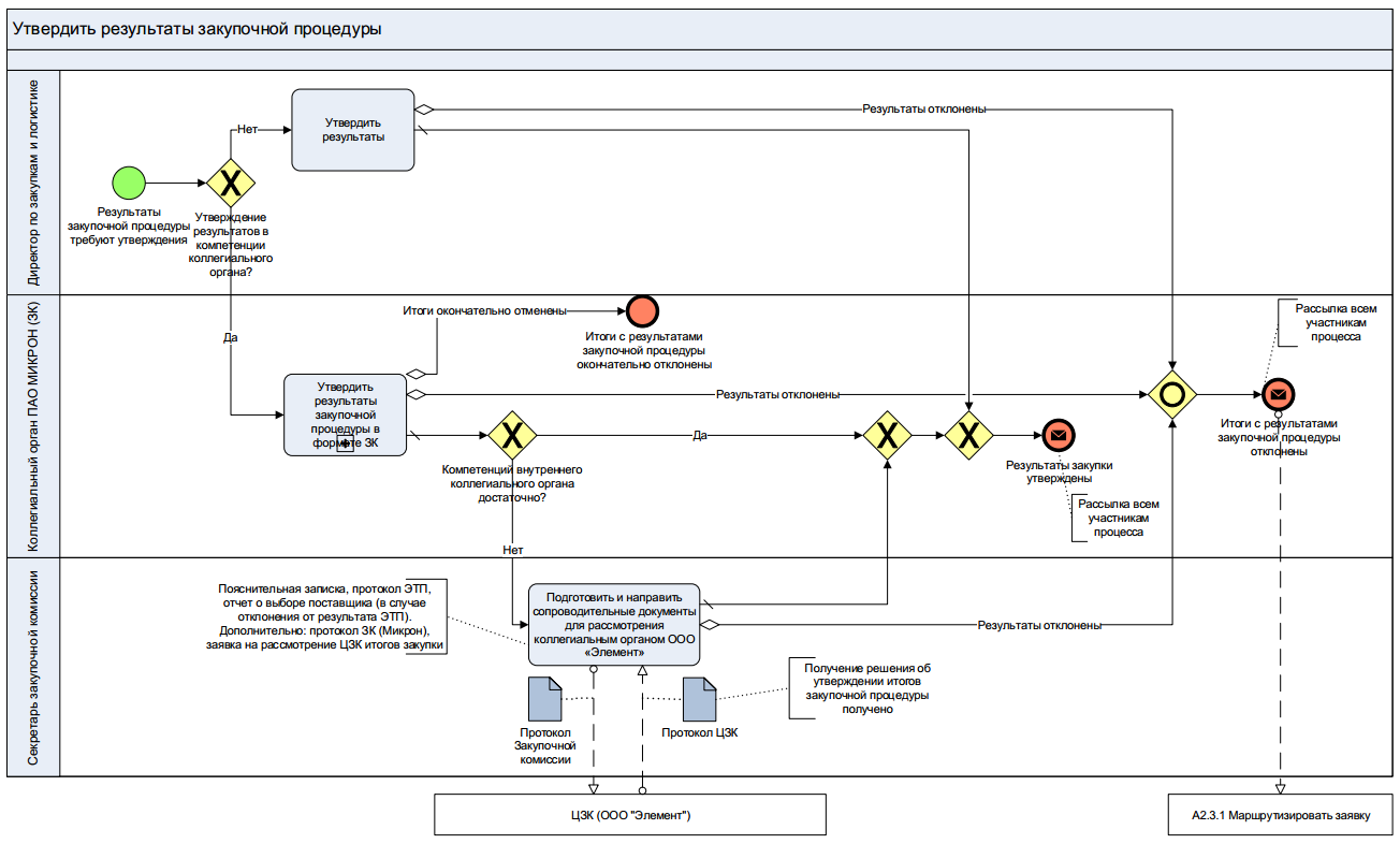 Рис. 2. Фрагмент модели сервиса Закупок в нотации BPMN 2.0