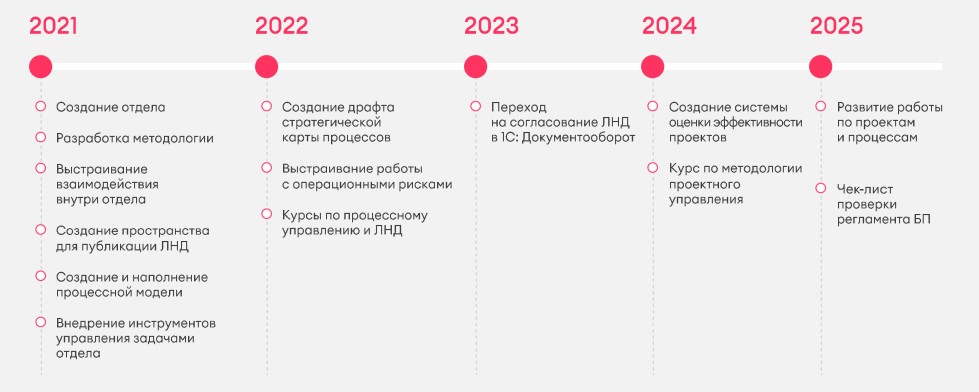Наш отдел многого достиг с начала его основания. У нас также много планов на будущее. Мы обязательно продолжим развивать нашу процессную модель и в рамках текущих задач, и по заявкам бизнеса. Также планируем вернуться к развитию сбалансированной системы показателей.