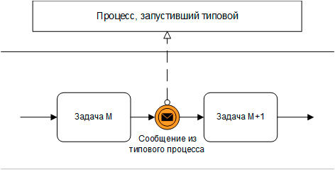 Как работает такая модель? По ходу выполнения запущенный из нашего процесса экземпляр типового процесса отправляет сообщение, которое обрабатывается. Это кажется немного странным (и для многих спорным), но может использоваться.