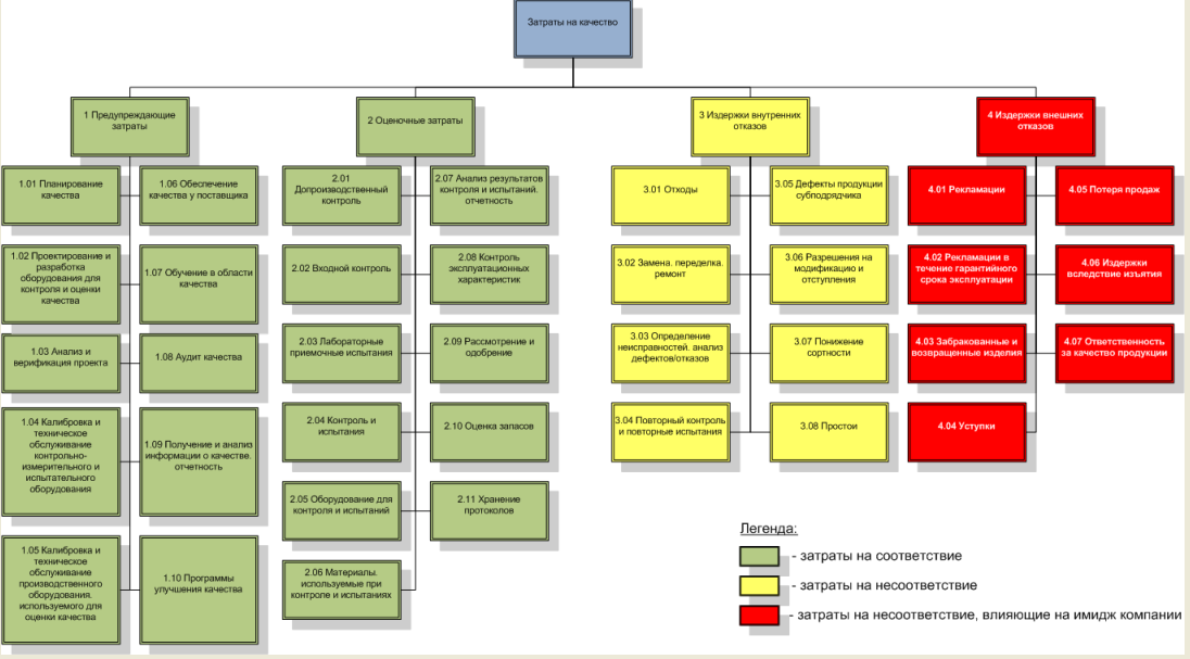 В основу нашей модели затрат на качество мы положим рекомендации из [2]. Так, все затраты на качество мы разбиваем на 4 основные группы: