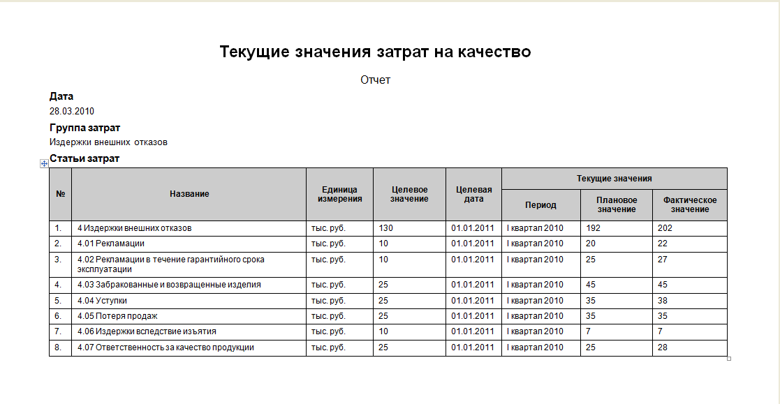| Затраты на несоответствие | Издержки внутренних отказов | 3 Издержки внутренних отказов | тыс. руб. | 140 | |