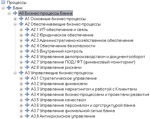 Рис. 1. Дерево бизнес-процессов банка (верхний уровень)