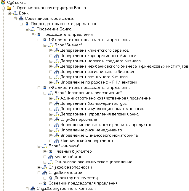 Рис. 2. Модель организационной структуры банка (верхний уровень)