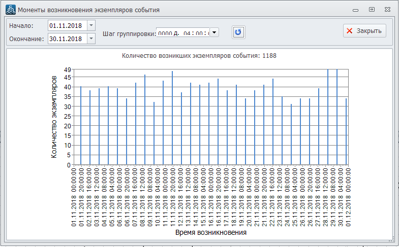 Имитация процесса проводилась для одного месяца — ноября 2018 г. По результатам имитации получены следующие данные: