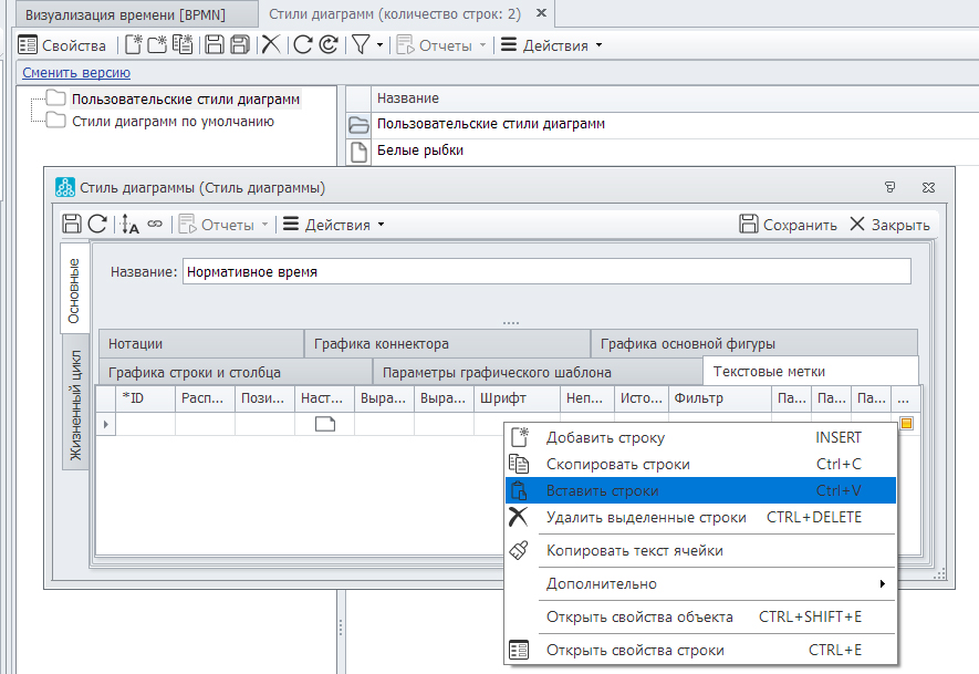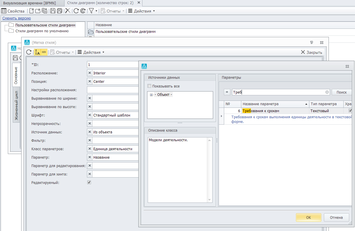 На рисунках 9-17 показан способ визуализации нормативного времени при использовании встроенного редактора и стилей в Business Studio 6.