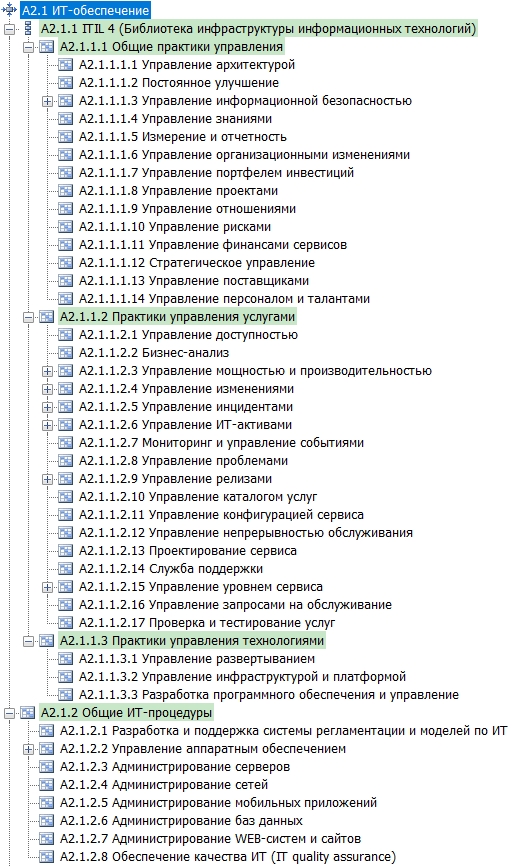 Рис. 3. Дерево (реестр) ИТ-процессов и процедур, фрагмент