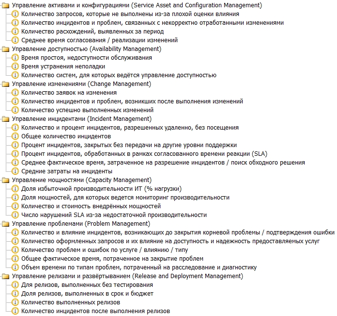 Рис. 4. Показатели KPI ИТ-процессов, фрагмент