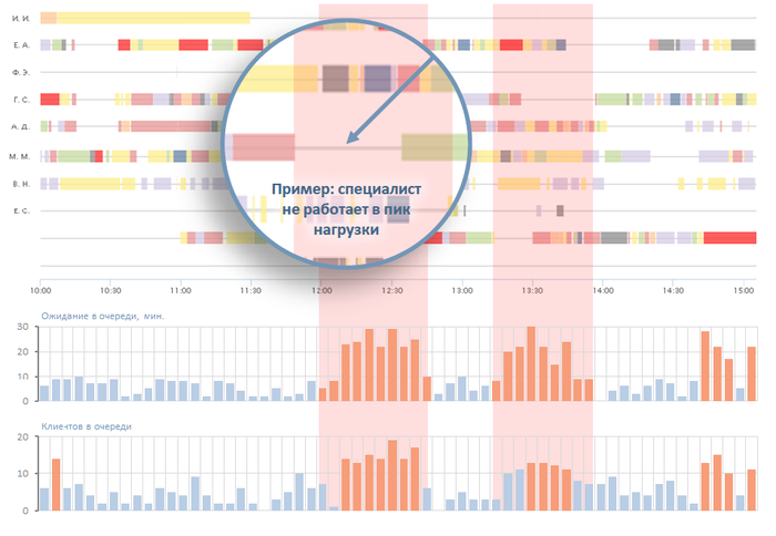 Пример: витрина моментально показывает простой сотрудника в часы пиковой нагрузки