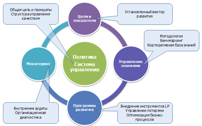 Практически, производственная система «ЭЛСИБ» обеспечивает управление качеством в широком смысле, как основы деятельности — качеством процессов, компетенций и т. д., а не только качеством продукции (Рис. 2).