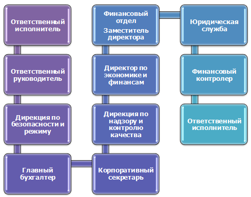 Этапы процедуры выполняются всегда последовательно даже в том случае, когда они могут выполняться параллельно (например, согласование договора должностными лицами, входящими в блок «Экономика и финансы»: главный бухгалтер, финансовый отдел, заместитель директора по экономике и финансам);