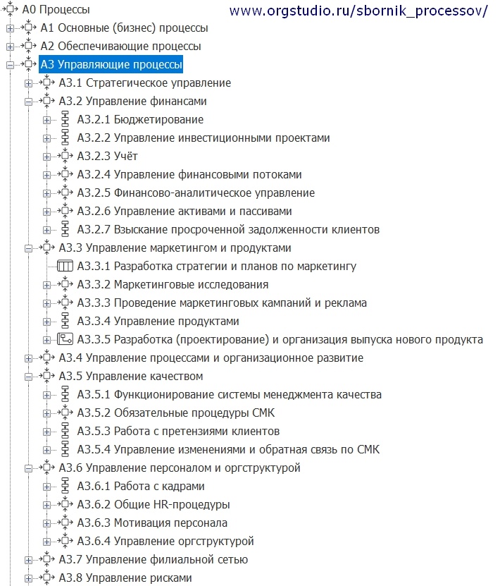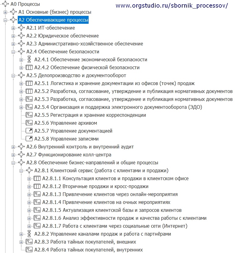 Рис. 2. Дерево обеспечивающих процессов (начало)
