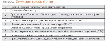 Помимо совещаний рабочей группы с директорами «Жилищников», в апреле—мае 2015 года проведены обучающие семинары по оказанию методической поддержки в разработке показателей системы критериев и эффективности деятельности учреждений и работников, стандартов качества государственных услуг. Были разобраны критерии модели делового совершенства и способы ее оценки, предложена упрощенная модель самооценки деятельности учреждения, определены и проанализированы показатели деятельности учреждения и работников с опорой на нормативные документы, обсуждены примеры стимулирующих выплат, варианты оценки деятельности руководителей и персонала, оказана методическая поддержка в анализе результатов анкетирования персонала и потребителей, отмечены типичные ошибки и предложены способы их устранения. После каждого занятия директора выполняли практические задания. В конце обучения проводилось итоговое тестирование и анкетирование слушателей, выставлялась суммарная оценка за выполнение домашних заданий. Поощрялось выдвижение и рассмотрение инициатив. Результаты первого этапа отражены в документах с учетом реализации целей проекта (см. табл. 1).