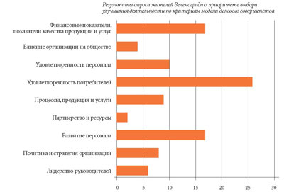 Рисунок 1. Приоритет выбора улучшения деятельности по критериям модели делового совершенства