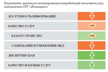 Еще одной вехой в реализации проекта стал пилотный опрос жителей о качестве услуг ГБУ «Жилищник», причем во время анкетирования вручался информационный листок о работе учреждения, в том числе контактные данные и фамилии ответственных лиц. Кроме того, жители могли лично высказать свое мнение и написать замечания и предложения. Результаты анкетирования в сжатой форме представлены на рис. 3. По мнению жителей, лучше всего работает диспетчерская служба, хуже всего представлена доступность информации о работе организации. Анализ этих замечаний помогает реагировать на запросы людей с опережением, не дожидаясь, пока