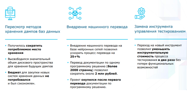 Рис.10. Результаты работы «конвейера изменений» на примере отдельных проектов 2023 года.