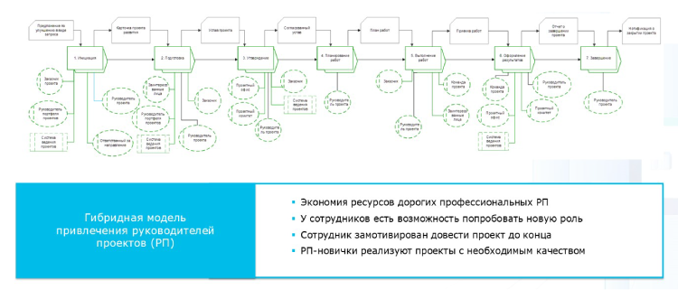 Мы используем гибридную модель, суть которой заключается в том, что, помимо привлечения руководителей проектов, участвовать в изменениях могут любые сотрудники, продвигая свои идеи. Для инициаторов проводятся обучения и курсы, способствующие развитию намеченной идеи и превращению ее в полноценный проект. Это мотивирует людей вкладываться в изменения.