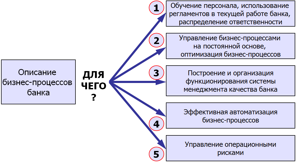 - Формирование базы знаний по работе банка на основе БП и доведение до сотрудников.