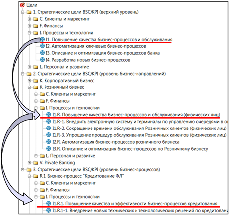 - Дерево (или иерархический список) стратегических целей банка (см. Рис. 4);