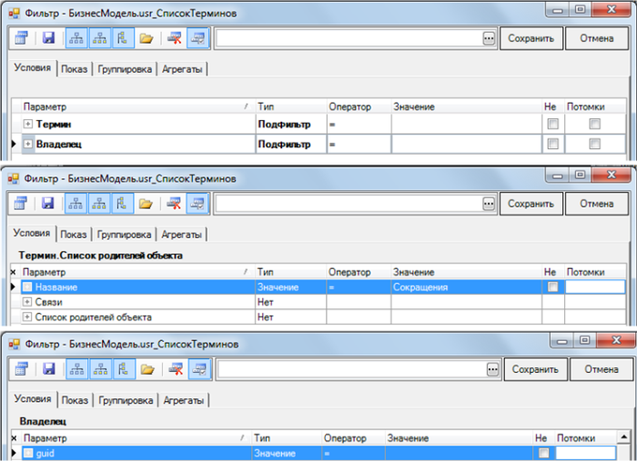 Рисунок 27. Настройка основного условия фильтра для вывода только терминов