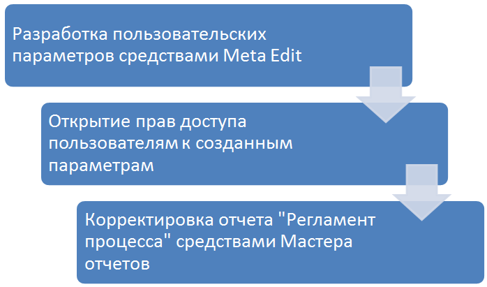 Второй этап (Рисунок 4) закончен. Закрываем окно «Права» и возвращаемся в пользовательский интерфейс при помощи команды «Сменить интерфейс» меню «Окна». Теперь созданные нами параметры доступны для работы. Связывание термина с процессом осуществляется стандартным для Business Studio методом Drag and Drop. Просто перетащите нужный термин на вкладку «Термины и сокращения» свойств процесса (Рисунок 24).