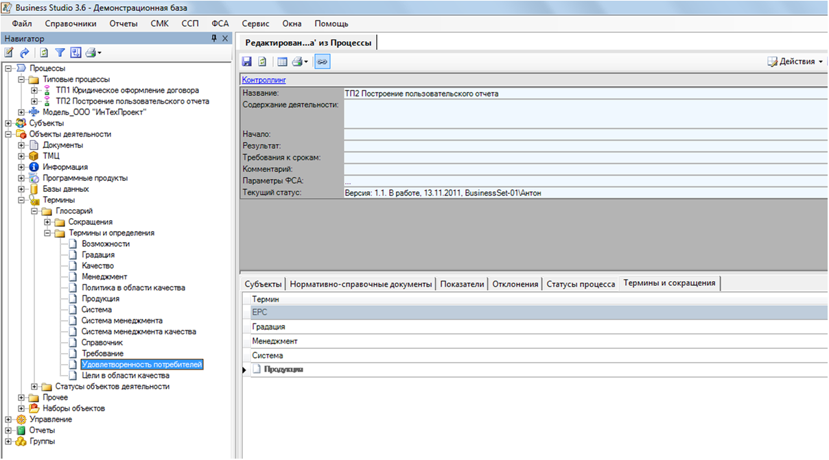 В предыдущей статье был рассмотрен алгоритм формирования понятийного аппарата компании средствами Business Studio. В результате было определено хранилище терминов и сокращений предприятия в базе данных Business Studio (Рисунок 1), а так же был сформирован отчет «Глоссарий» (Рисунок 2), предоставляющий возможность работать с терминами компании в едином документе.