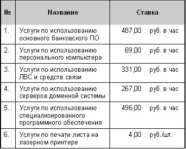 Стоимость внутренних услуг, приведенная выше, рассчитана без использования данных банка, на основании среднерыночных цен и с учетом усредненной