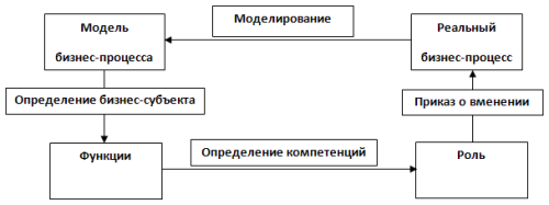 Обратимся к практике бизнеса. Рассмотрим цепочку образования сущности «роль» в процессном подходе к моделированию бизнес-процессов.