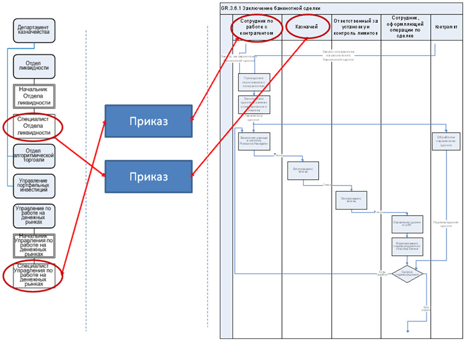 Рис. 2. Ролевая схема бизнес-процесса. Связь с оргструктурой (диаграмма построена в системе бизнес-моделирования Business Studio)