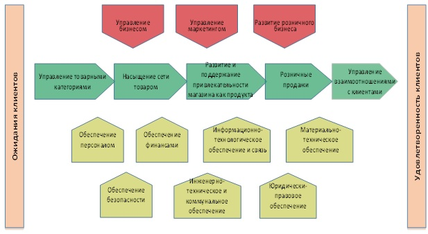 Основными являются процессы, в сумме являющиеся механизмом производства денег путем создания и реализации услуги розничной торговли.