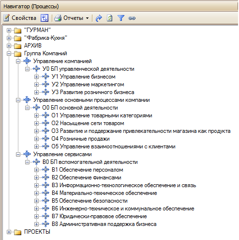 Процессы охватывают 100% деятельности нашей компании. Каждый вид работ, выполняемый магазином, складом, транспортным отделом или сервисными подразделениями описан в среднем до