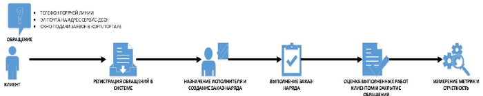 Мы создали следующую типовую модель работы со всеми сервисными процессами, которую же можно представить и как жизненный цикл каждого сервисного процесса (см. Рис. 7).
