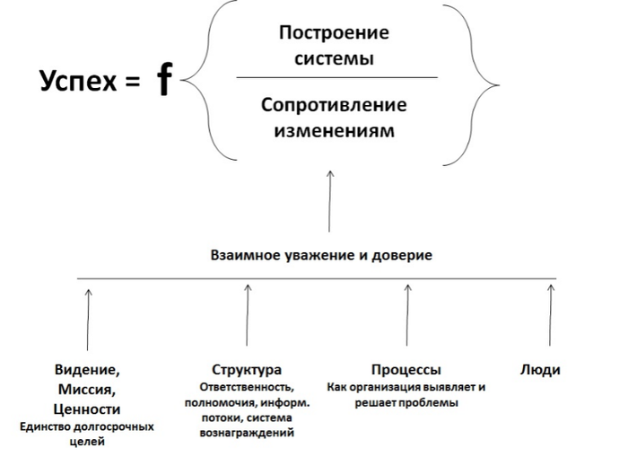 Успех — это функция от отношения между усилиями по изменению компании и силой сопротивления этим изменениям, на которое, в свою очередь, огромное влияние оказывает существующая в компании культура.