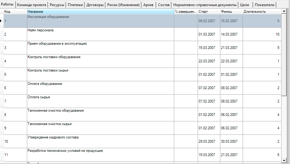В результате сведения о работах проекта будут импортированы в табличную часть формы «Проекты», при этом: