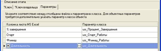 Соответствие параметров Работ проекта задаются на соответствующих вкладках пакета импорта:
