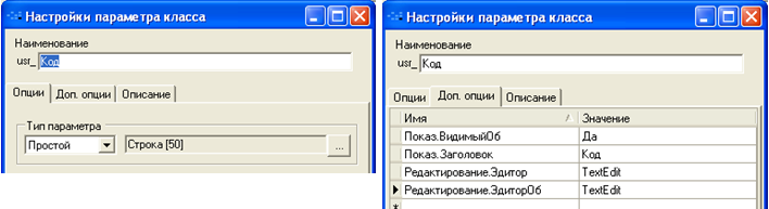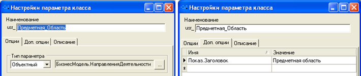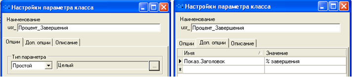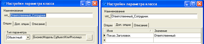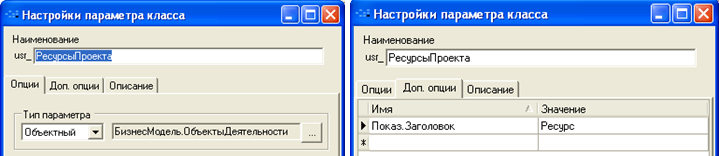 Для закладки «Ресурсы проекта» параметры списка и параметр класса «Проекты»: