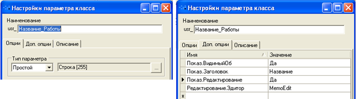 Для закладки «Работы проекта» параметры списка и параметр класса «Проекты»: