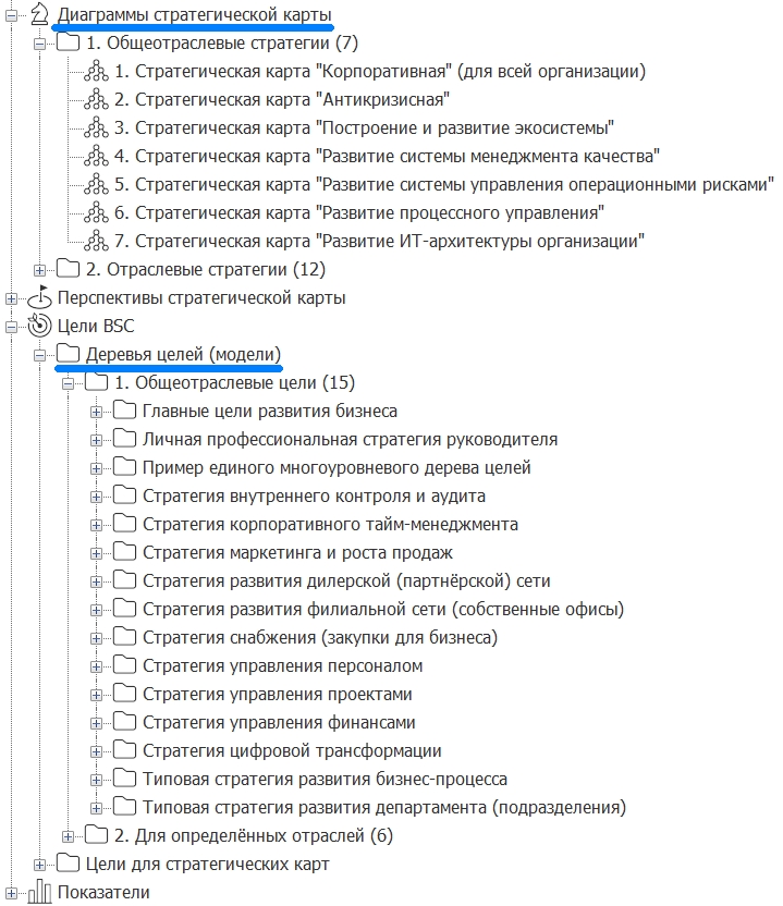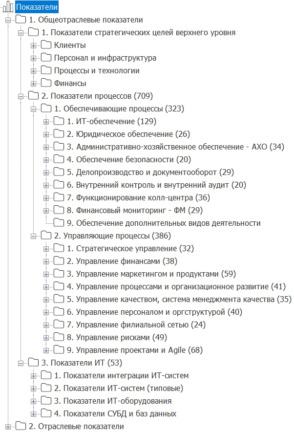 Рис. 5. Группировка и виды показателей для измерения стратегических целей и процессов