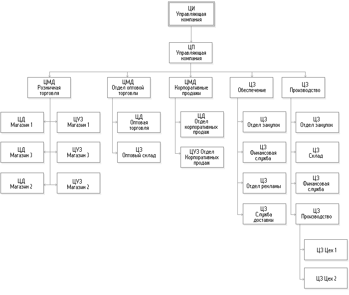 Можно сформулировать три основных метода выделения ЦФО на основе организационной структуры:
