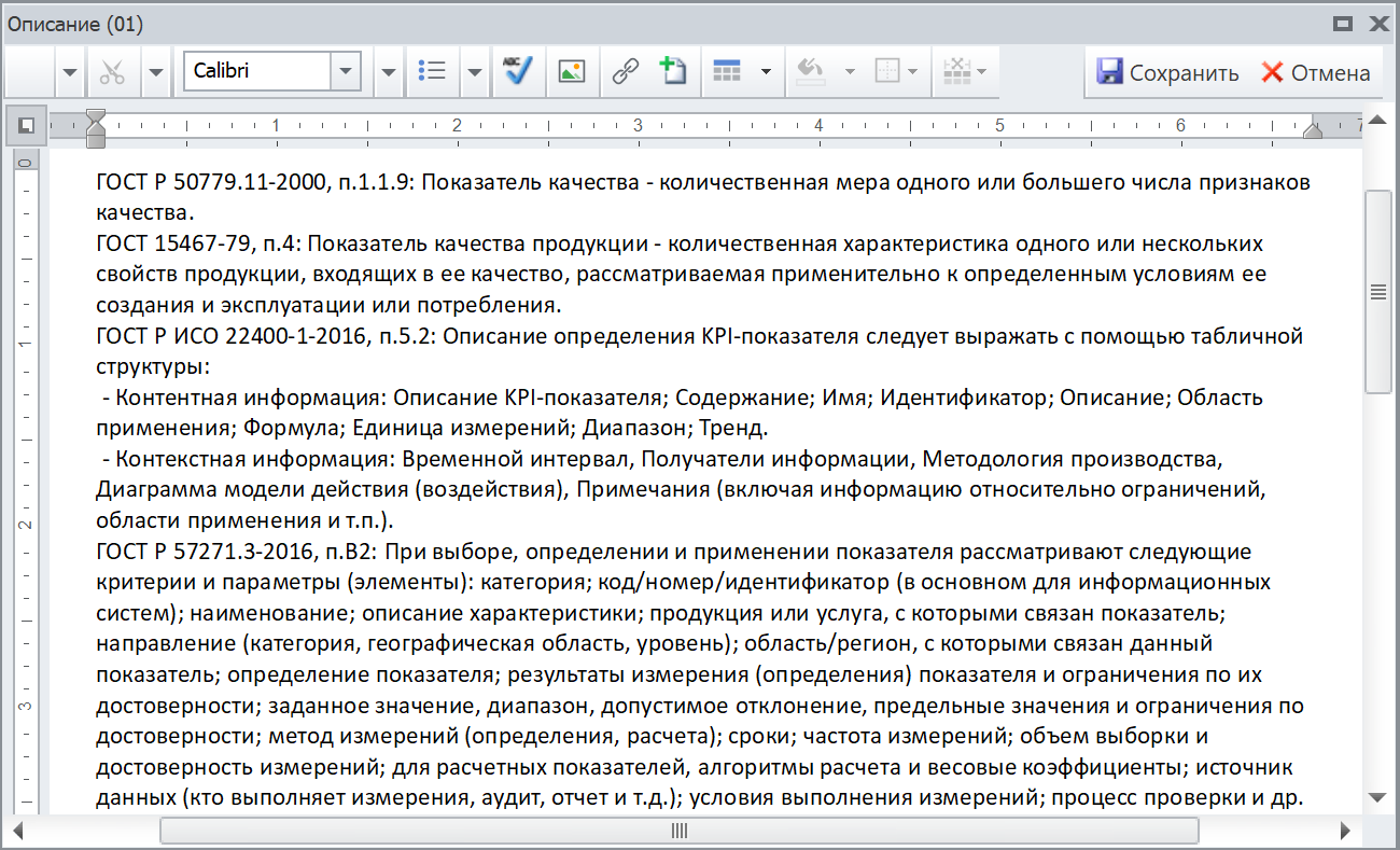 - в столбце «Описание» указать требования стандартов относительно атрибута определения показателя (рис.12).