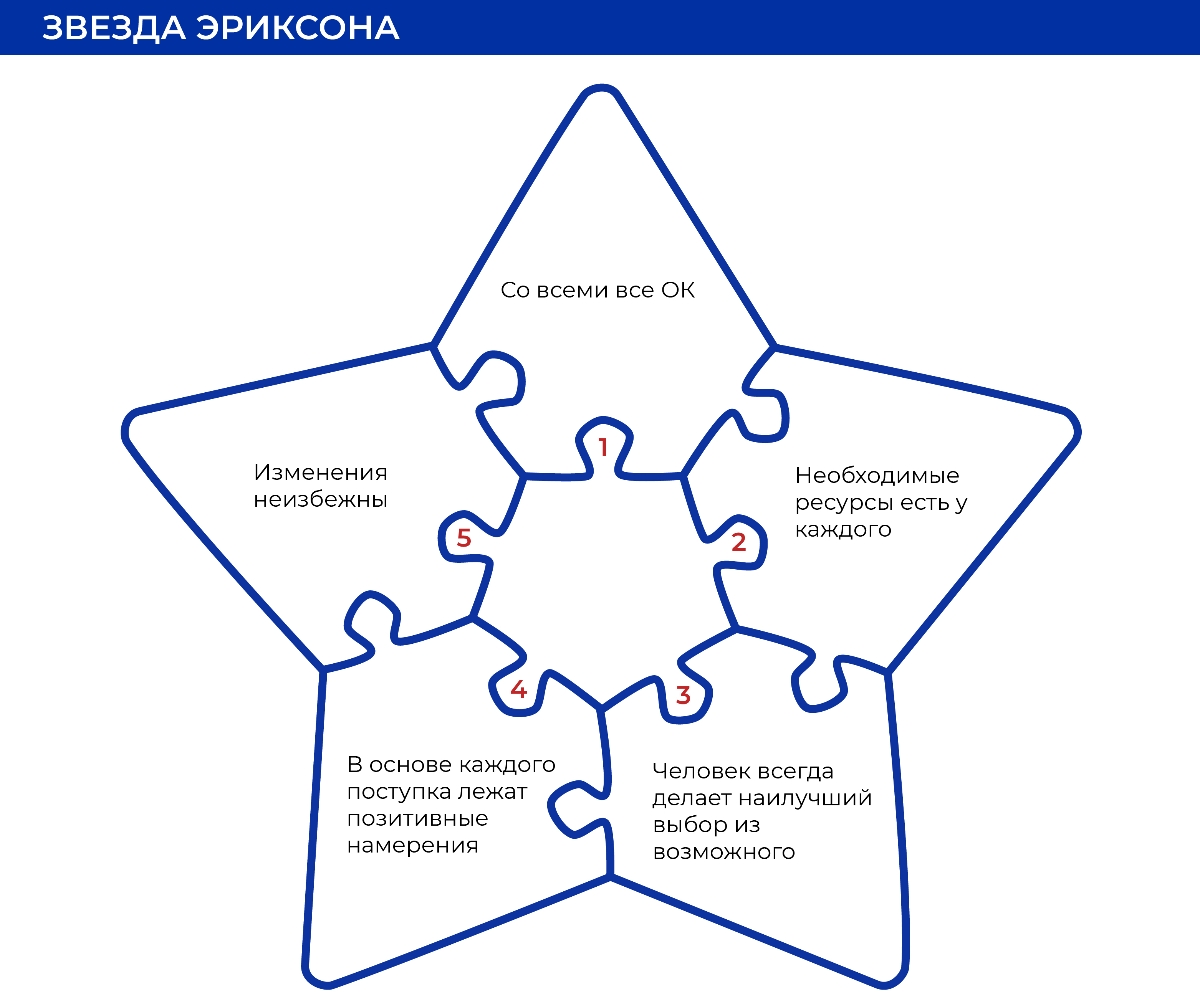 Каждый из 16 филиалов фонда в проекте участвовал дважды — как испытуемый, чьи кейсы разбирались единой группой качества, и как один из экспертов при анализе работы следующего филиала. Развивающая обратная связь, которую Департамент клиентского сервиса давал филиалу, и опыт, полученный в работе группы, позволил сотрудникам филиалов ускоренно пройти путь от судьи до новатора. Изменился лексикон, и фразы «я вижу в этом зону роста», «в этом есть потенциал для развития» вошли в обиход на встречах экспертов. Постепенное внедрение изменений в процессы компании прямо в ходе проекта, который длился в общей сложности чуть больше года, повысило мотивацию и вовлеченность всех участников. Ближе всего настрой экспертов описывает звезда Эриксона — еще один подход, пришедший из коучинга — изменения неизбежны, выбор всегда наилучший, и у нас есть для этого все необходимые ресурсы.