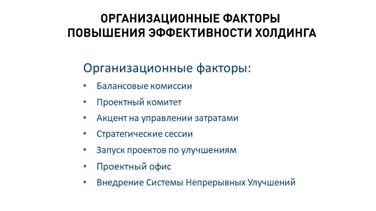 Рис. 5. Организационные факторы повышения эффективности холдинга