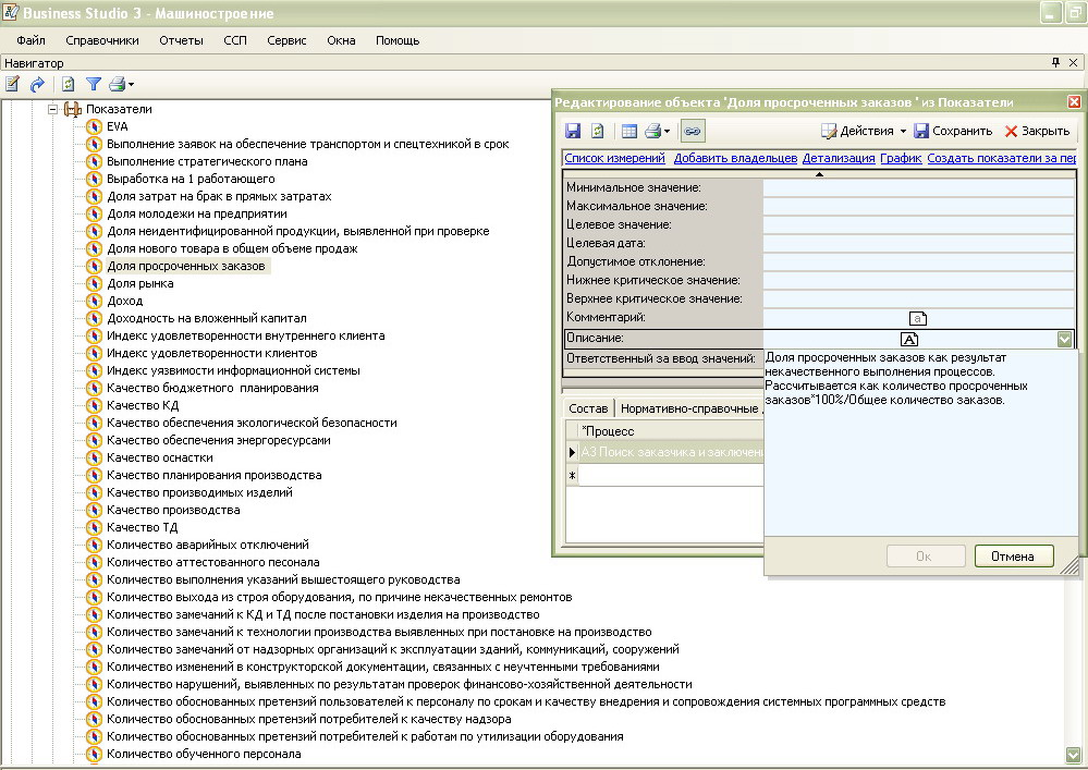 Для контроля и оценки KPI, анализа несоответствий и причин их возникновения удобно использовать «приборные панели», реализованные в системе Business Studio.