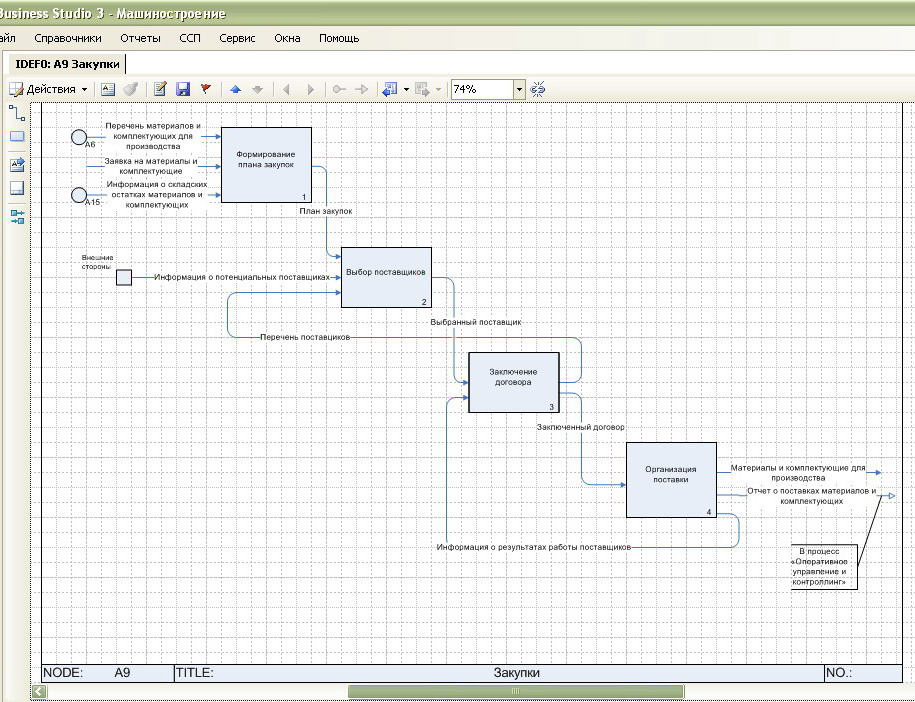 После формирования модели процессов необходимо переходить к регламентации каждого из процессов. Здесь возможны различные подходы. В системе Business Studio процессы можно описать с использованием наиболее популярных и удобных нотаций моделирования: IDEF0 (ICAM Definition), EPC (